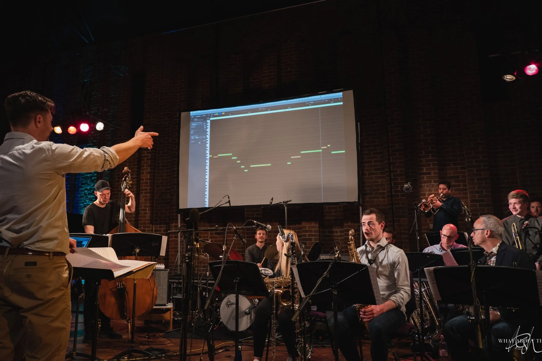 We were joined by jazz stars Julian Argüelles (saxophone) and Jasper Høiby (bass), as well as Southampton’s new professional jazz ensemble the Dan Mar-Molinero Jazz Orchestra and their special guest the Jazz Transformer Algorithm from Taiwan to find out. The event included a roundtable discussion featuring the artists in conversation with Dame Wendy Hall, Regius Professor of Computer Science at the University of Southampton, and Dr Thomas Irvine, Associate Professor in Music and Turing Fellow, followed by a concert of jazz standards like you might not have heard them before.